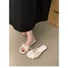 Gentle flat-bottomed bow toe slippers women's summer wear fashion soft-soled one-word holiday sandals