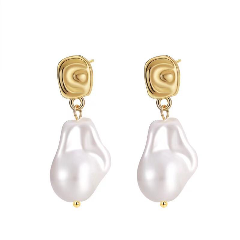JMXD-Retro Fashion Girl Baroque, Stud Earrings Simple Irregular Special-shaped Artificial Pearl Earrings