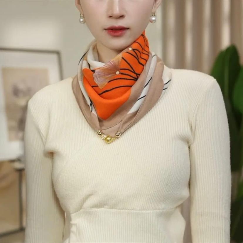 Magnetic Buckle Small Scarf, Women's Silk Scarf, Square Scarf, Clothing Accessories