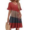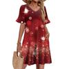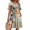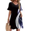Robe d'été trapèze pour femme à manches courtes et col en V imprimée avec poches