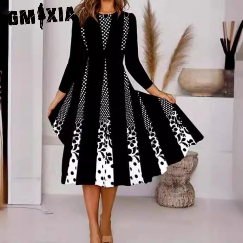 GMXIA Robes décontractées à manches longues et col rond pour femmes, mode automne-hiver
