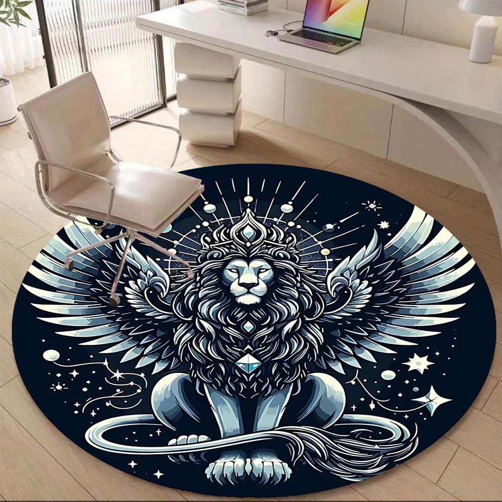 1pc Winged Lion Office Round Area Rug, Mat Suitable ForOffice, Under Office Chairs Bedroom Living Room Home Decor, Room Deco