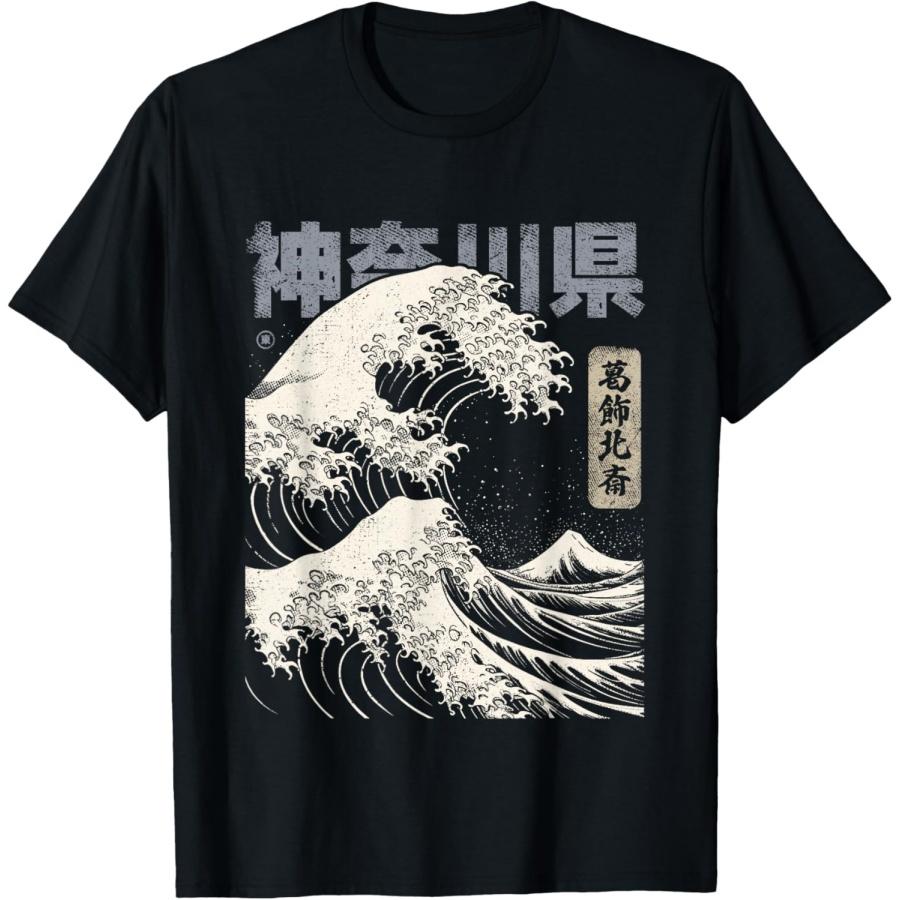 T-shirt Vintage Japonais Kanagawa Hokusai Ukiyo-e Grande Vague(1)
