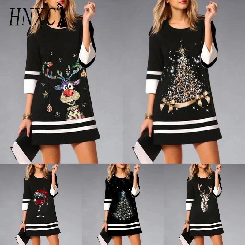 HNXC Robes décontractées à col rond et manches 3/4 pour femmes, mode été printemps