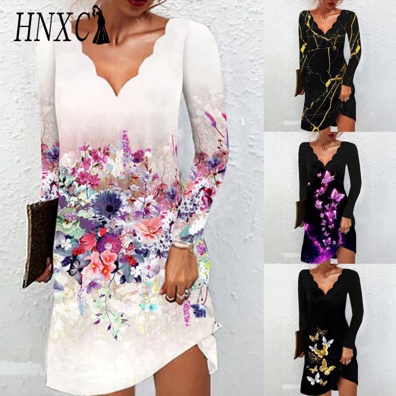 HNXC Robes décontractées à manches longues et col en v pour femmes, mode automne hiver