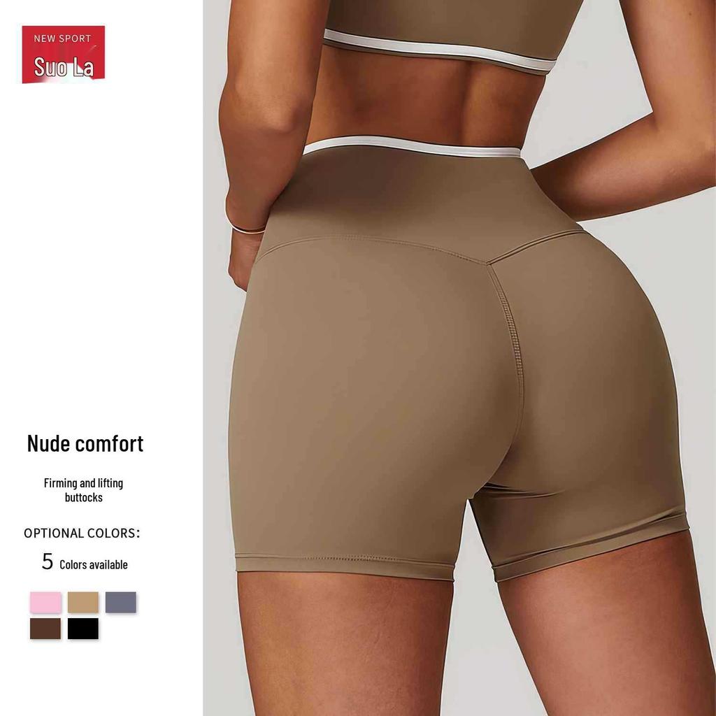 Shorts de Yoga Américains Européens Taille Haute avec Effet Push-Up Pêche - Pantalon de Fitness Trois Points pour Femmes