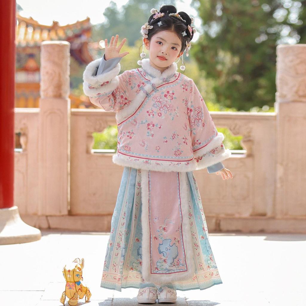 Introduce your little one to the elegance of traditional Chinese fashion with this charming skirt set. Designed with the Ming Dynasty style in mind, this outfit features intricate detailing and vibrant colors perfect for the festive season. Made from high-quality polyester, it ensures warmth and comfort throughout the winter months. This thickened New Year outfit is ideal for cultural events, celebrations, or any occasion where your child can shine in timeless style.