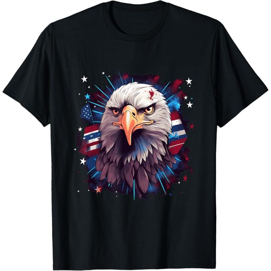 T-shirt Patriotique Sea Eagle Drapeau Américain 4 Juillet avec Aigle à Tête Blanche