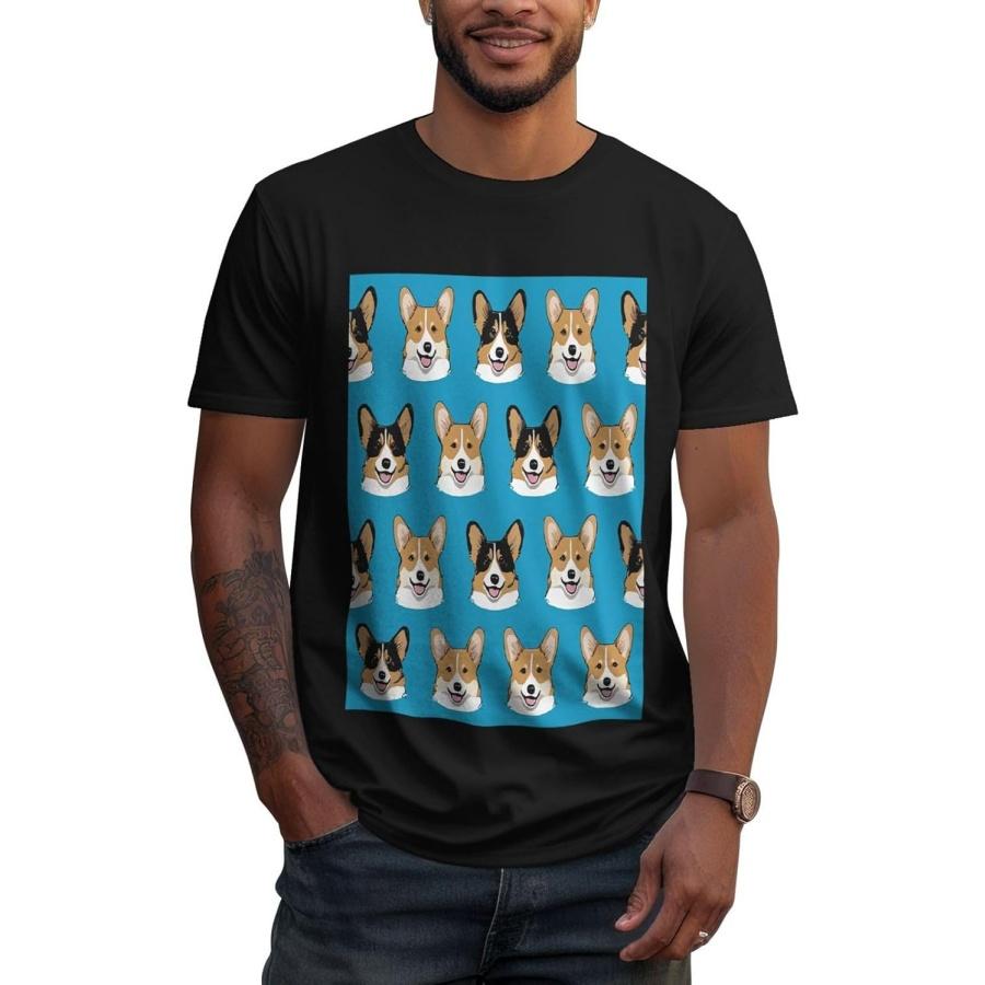 ZERAOKE Men's Cotton Crew Neck T-Shirts, Non-Shrink Fit Shirts, Cute Corgi Breathable Casual Tees for Travel Gym