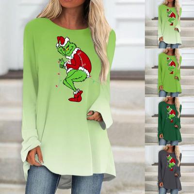 Mode femme décontracté à manches longues imprimé de noël col rond pull haut chemisier