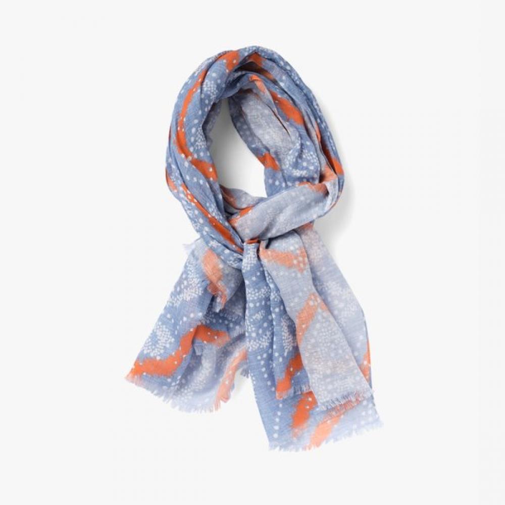 L'écharpe GIERRE MILANO à motif floral unique présente une couleur bleue et est fabriquée en laine douce et chaude, arborant un design sophistiqué accentué par de subtils motifs floraux.. Il présente une frange à finition naturelle, ajoutant une touche luxueuse. Cette écharpe est polyvalente pour les looks habillés comme décontractés.