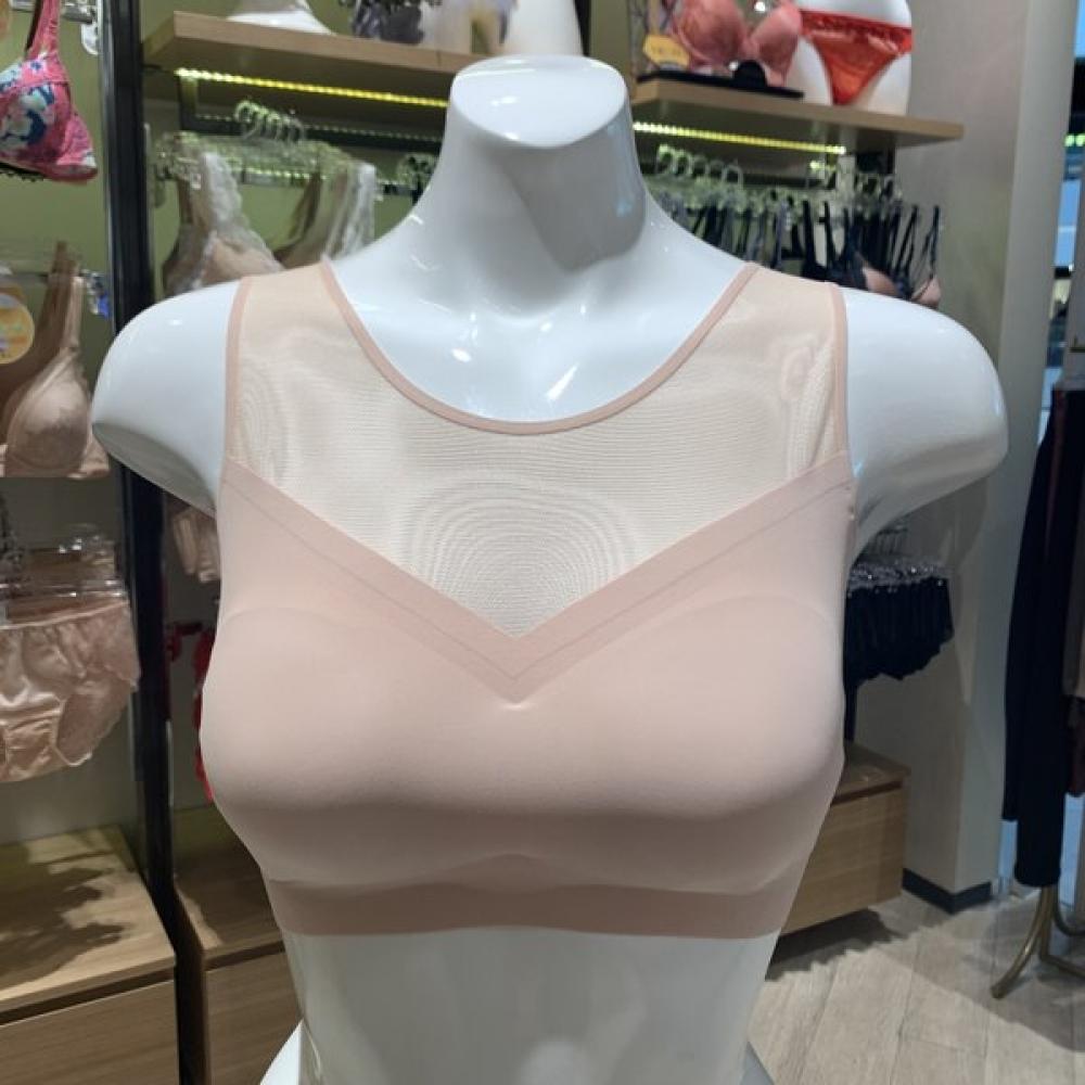 The Non-Wire Seamless Full Cup Bralette (VBRS909) priced at 49,000 won is suitable for summer wear. It features a pad insertion design that is comfortable and elastic, with mesh on the front and back for excellent breathability. The free-cutting processing provides a smooth wearing experience without pinching the body. The full cup design covers the entire breast and features comfortable shoulder straps for a burden-free fit.