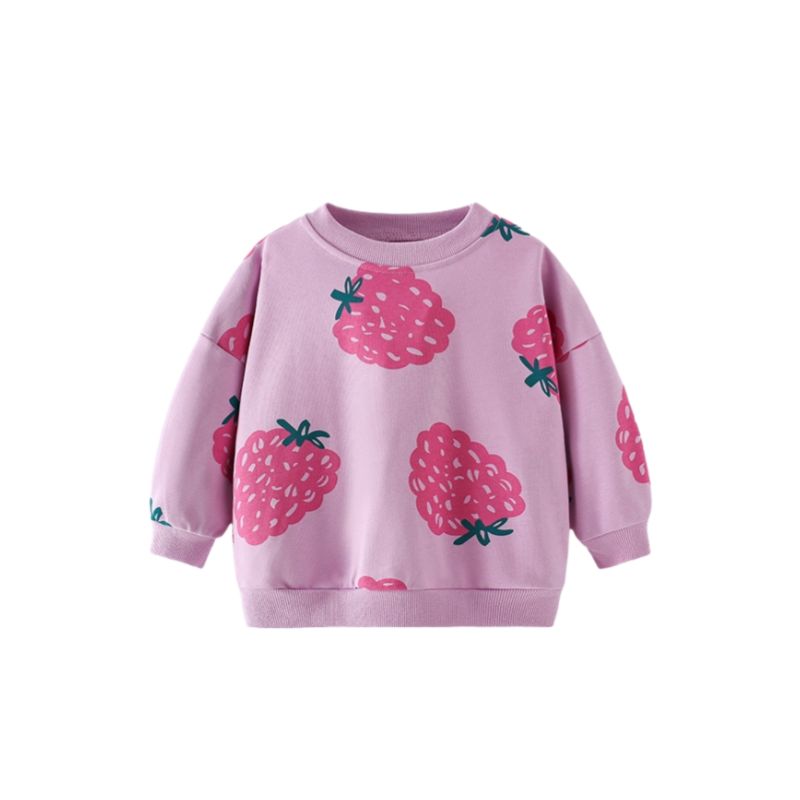 Girls' Sweatshirt Spring and Autumn Children's Clothing Cute Strawberry Print Long-Sleeved Casual Top Children's Pullover