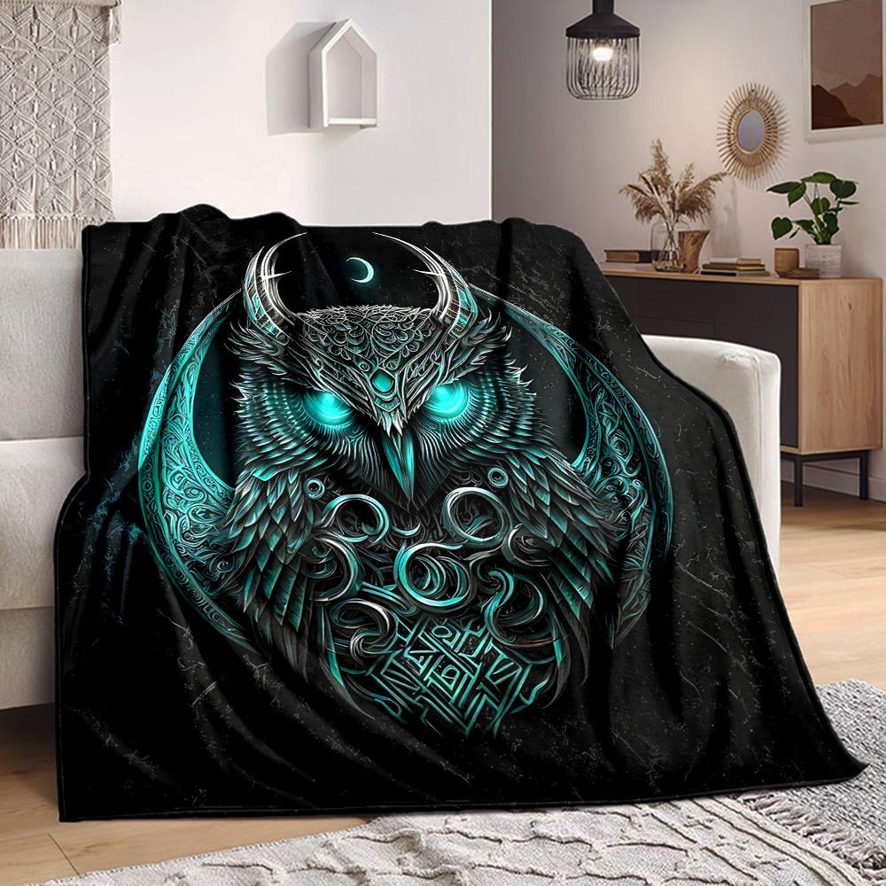 1pc Moonlit Mystic Olw Blanket, Lightweight Flannel Throw Blanket for Sofa, Bed, Travel, Camping, Living Room, Office, Couch, Chair, and Bed