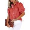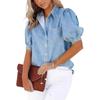 Chemise en jean à manches bouffantes pour femme Boutons devant Manches courtes Décontractée Multicolore