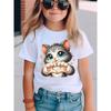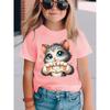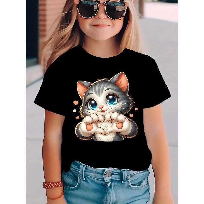 Tailles européennes Mode T-shirt à manches courtes pour filles avec impression dessin animé de chat Haut décontracté NYDX5928
