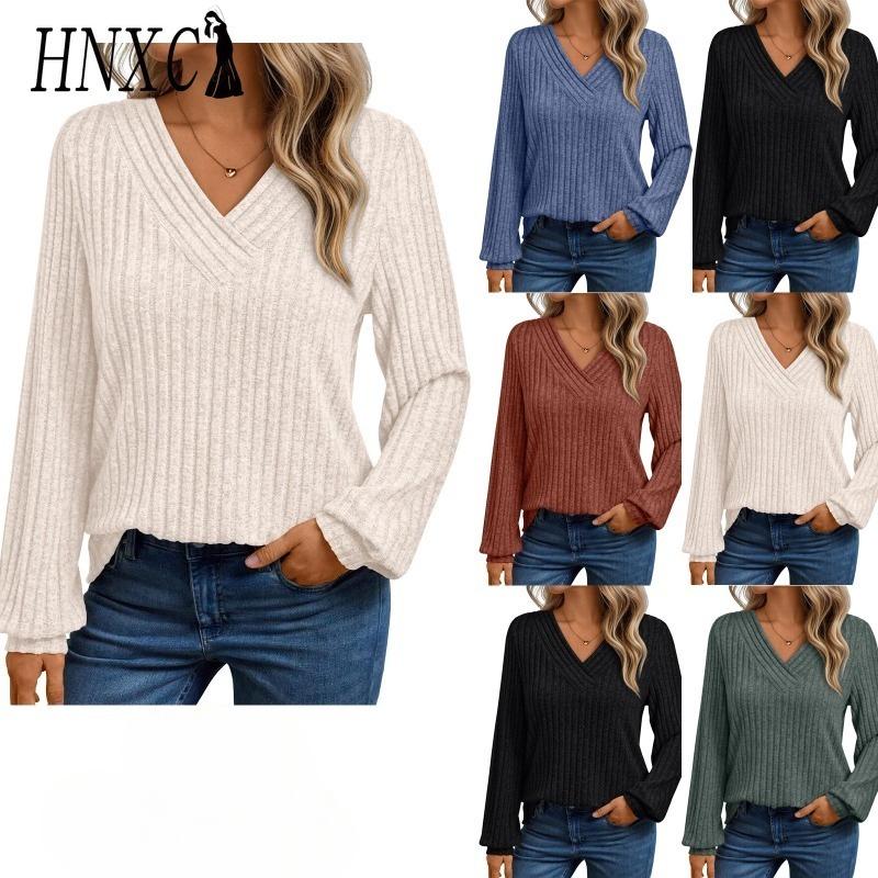 HNXC Chemisiers et chemises décontractés à manches longues et col en V pour femmes, couleur unie imprimée