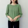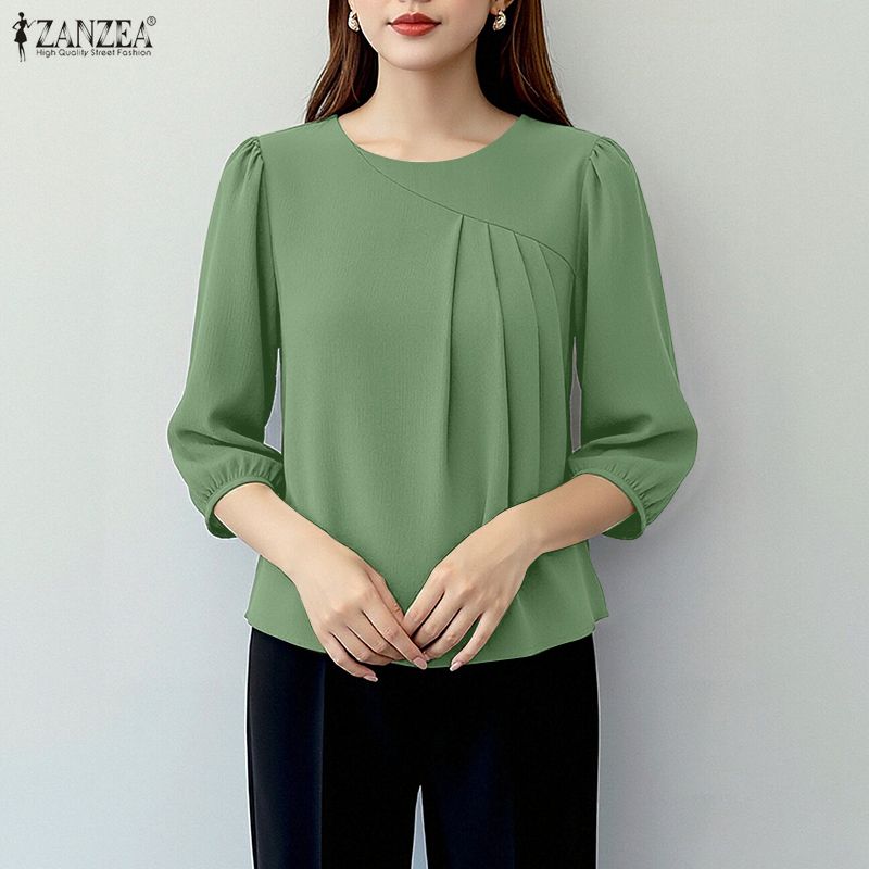 ZANZEA Blouse Décontractée Femme Col Rond Couleur Unie Manches 3/4