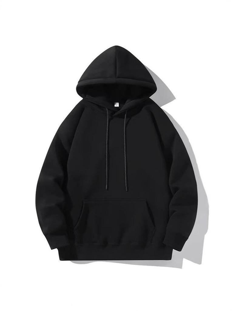 Sweat à capuche unisexe en velours plus - Automne/Hiver Décontracté Coupe ample Haut de couleur unie