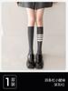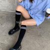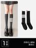 Color Matching Socks Women'S Ins Trendy And Versatile Autumn Black And Gray Spliced Knee Socks High Value Mori Black Calf Socks