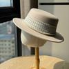 Nouveau Style Élégant à la Française Style Pois Perle Chapeau Plat pour Femmes Automne Hiver Voyage Bord de Mer Chapeau de Plage Laine