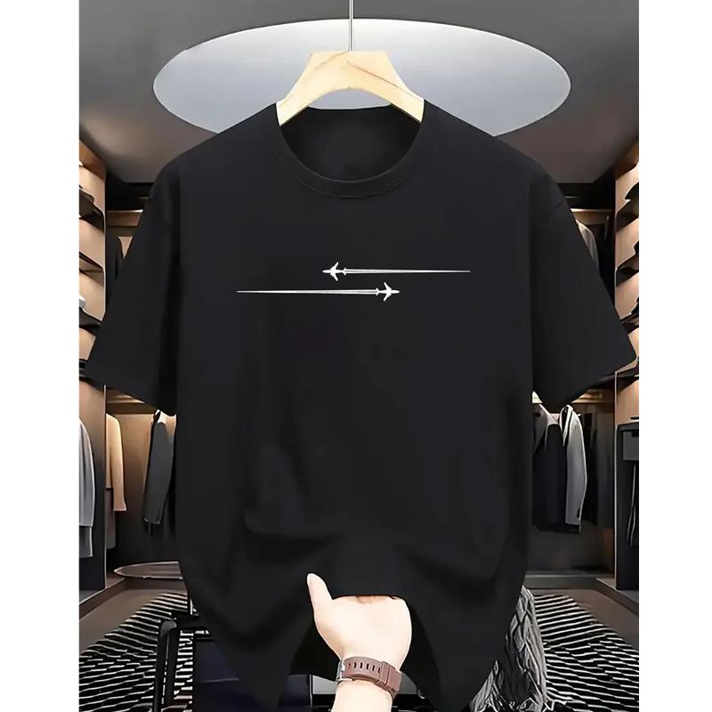 T-shirt d'été décontracté pour homme, tissage lâche, motif avion créatif imprimé, confortable, sport, col rond, manches courtes