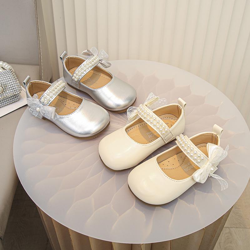 Chaussures Mary Jane en cuir pour filles: Chaussures de princesse à nœud, semelle souple, perles - Printemps/Automne 2026