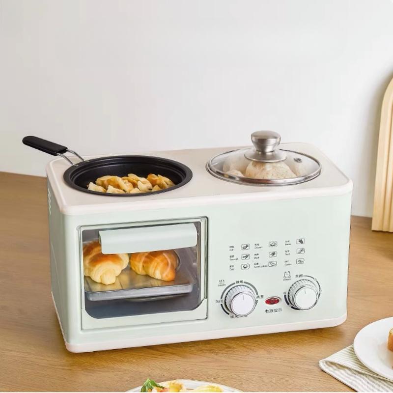 Machine à petit-déjeuner électrique domestique multifonctionnelle 4 en 1 Grille-pain Poêle Mini four Machine à pain et à pizza Cuiseur vapeur Bouilloire