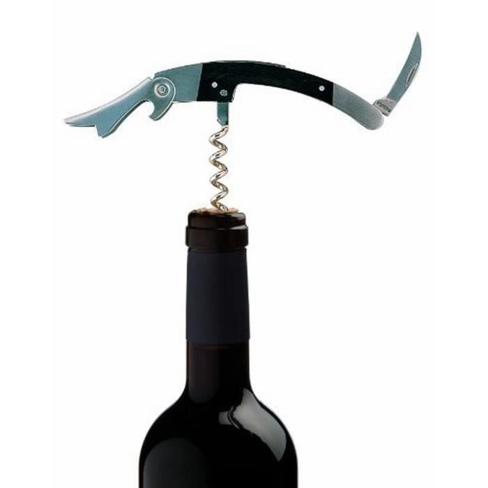 Tire bouchon - chef sommelier - acier inoxydable - bois sombre - design contemporain - 1 pièce