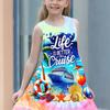 Robe débardeur sans manches à col rond pour fille Style sirène mignonne et élégante Motif d'impression numérique 3D Robe d'été polyvalente mini pour enfant