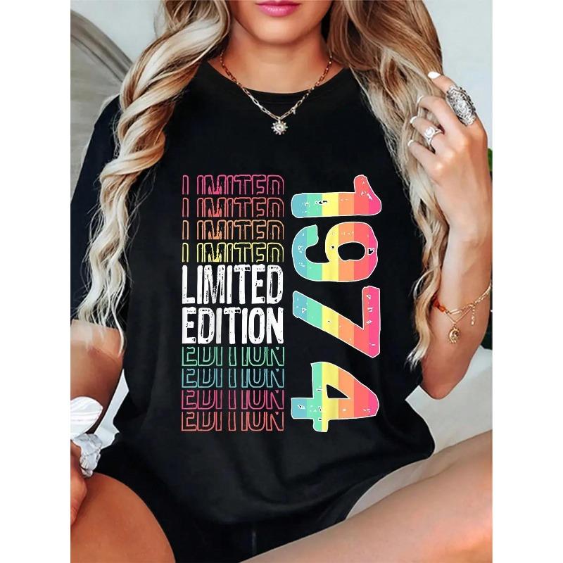T-shirt Graphique Vintage 1974 Grande Taille pour Femmes Édition Limitée Impression Dégradée Col Rond Manches Courtes Décontracté Haut d'Anniversaire