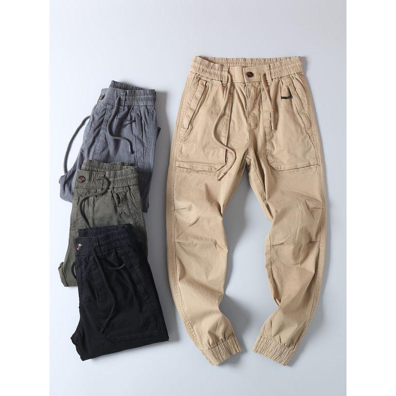 Export OEM Goods Tail Goods Pure Cotton Washed Overalls Casual Pants Men Trendy Spring & Fall Elastic Waist Ankle-Tied Harem Pants