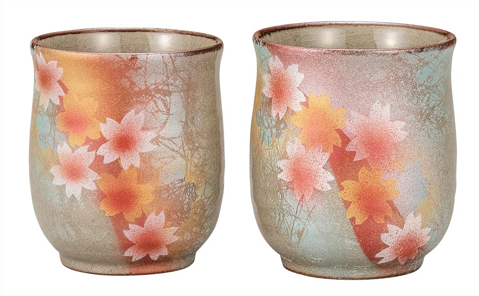 Ensemble de tasses à thé Kutani ware Iwataya avec motif soleil et fleurs K9-762