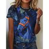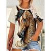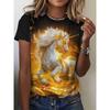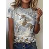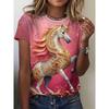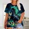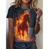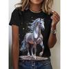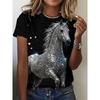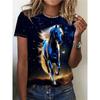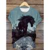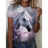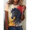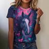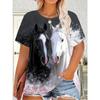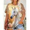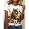 Haut décontracté à manches courtes et col rond avec imprimé animal cheval pour femme