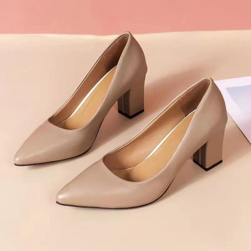 Chaussures féminines femmes mignonnes bout pointu élégant confort printemps à enfiler talon carré chaussures dame décontractées escarpins à talon ab575