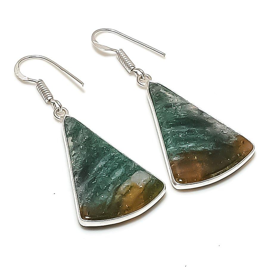 Boucle d'oreille en Aventurine Verte Naturelle Argent Sterling 925 1.97" AE-11627