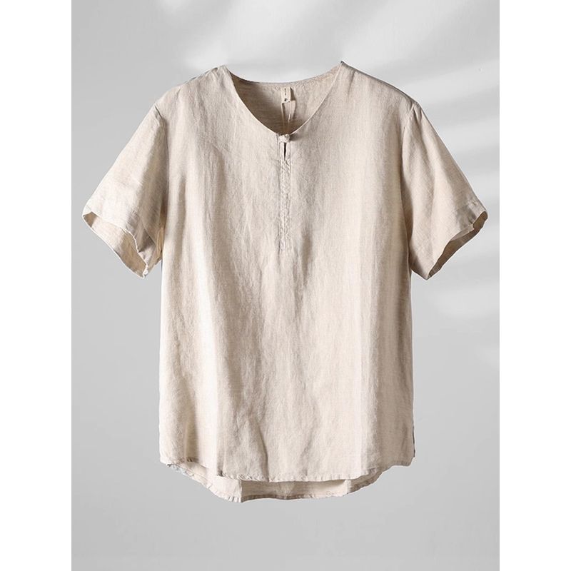 Chinese Pure Linen T-shirt Short Sleeve Men Retro Tang Suit