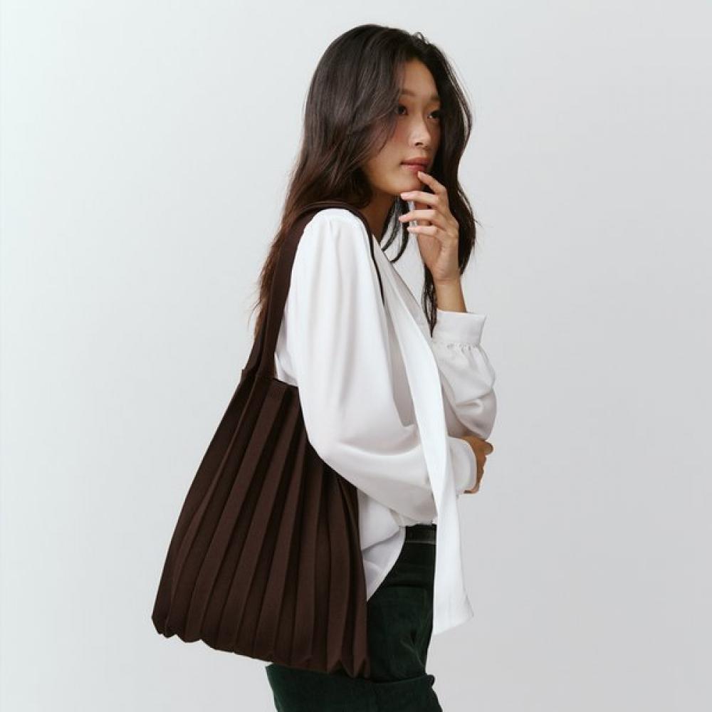 The New Shoulder Bag Deep Brown is designed in a size that's perfect for daily use. Made from corn-based bio-material, this product offers a sturdy feel that provides stability. Additionally, its sophisticated deep brown color matches well with various styles.