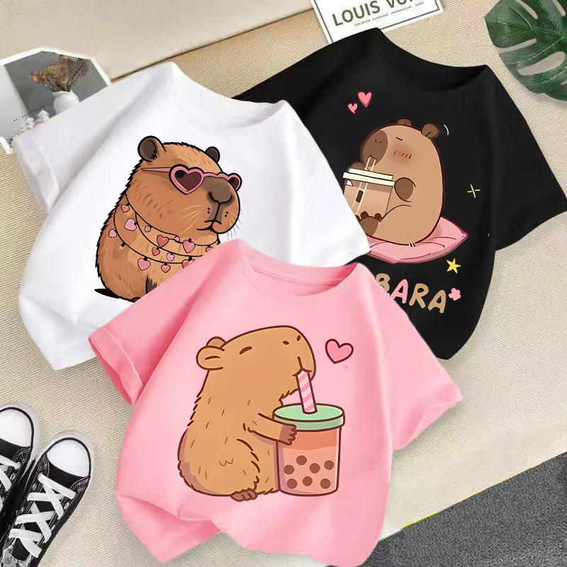 Nouveau T-shirt d'été mignon Animal Capybara Mode Imprimé pour Enfants Manches Courtes Mode Vêtements pour Enfants Purs