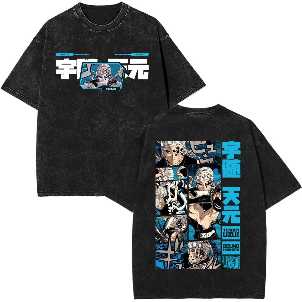 Kimetsu No Yaiba Anime Demon Slayer T-shirt Tengen Uzui Manga T-shirt Vintage Lavé Hommes Confortable Décontracté Streetwear T-shirt