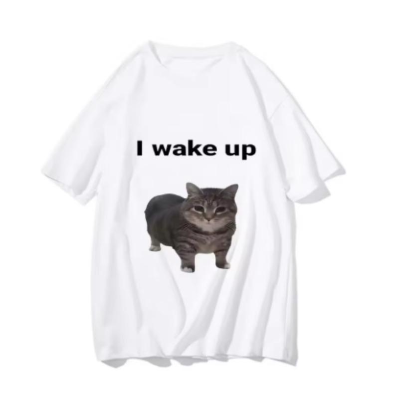 Women Cute Cat L Wake Up T Shirts Funny Cool Classic Men Women Clothes Harajuku Aesthetic Vintage Streetwear Tees T Shirt