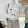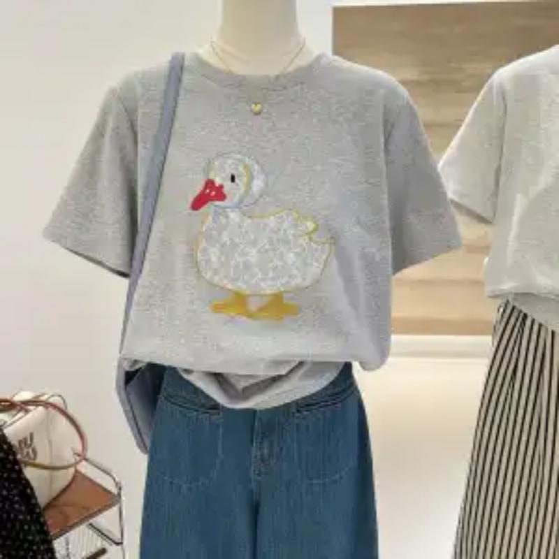 T-shirt d'été décontracté pour femme avec graphique de canard brodé, col rond, manches courtes, coupe ample
