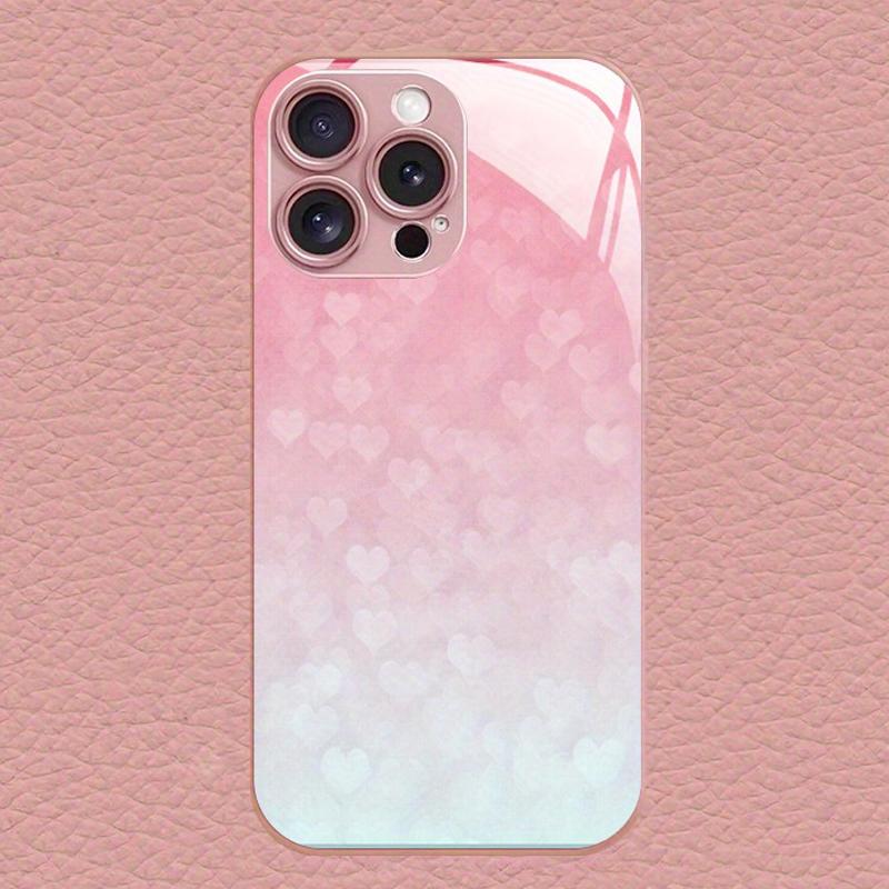 Motif dégradé Ombre de Lumière Cœur d'Amour Peinture Métallique Étui en Verre Pour iPhone 11 12 13 14 15 16 17 Pro Max Plus 16E 17Air Coque