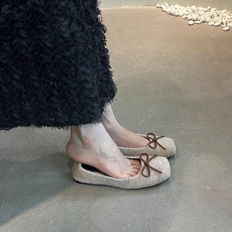 Vent Doux du Soir Bouche Peu Profonde Mao Mao Chaussures Simples Automne Hiver 2025 Noeud Semelle Souple Bout Carré Chaussures Doudou