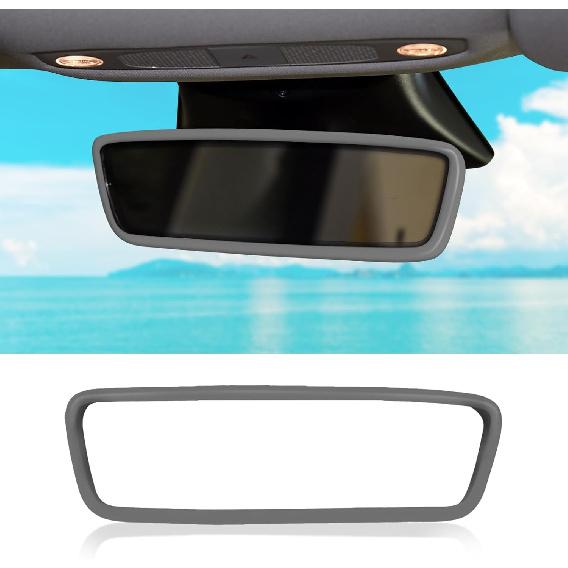 Car Rear View Mirror Silicone Protector Cover, Compatible with Model 3/Y, Auto Interior Mirror Decoration Frame, Car Accessories (Gray)
