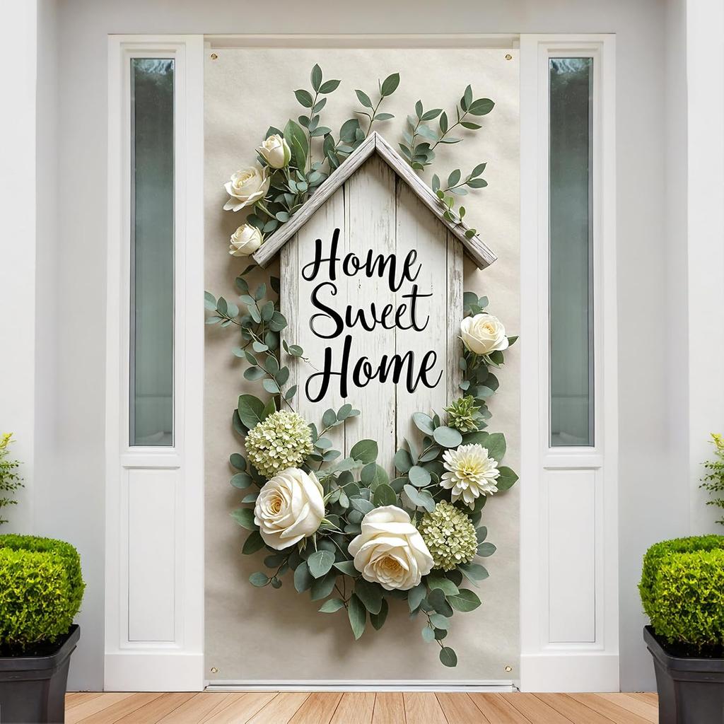 Home Sweet Home Door Cover Housewarming Party Decorations Door Banner Welcome Home Floral Backdrop Decor Greenery Leaves New Home Party Photography