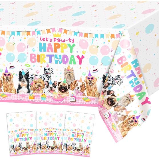 Avezano 3 pcs Puppy Dog Birthday Party Tablecloth Disposable 108x54 inch Puppy Themed Birthday Party Decorations Tablecovers Dog Pawty Decorations