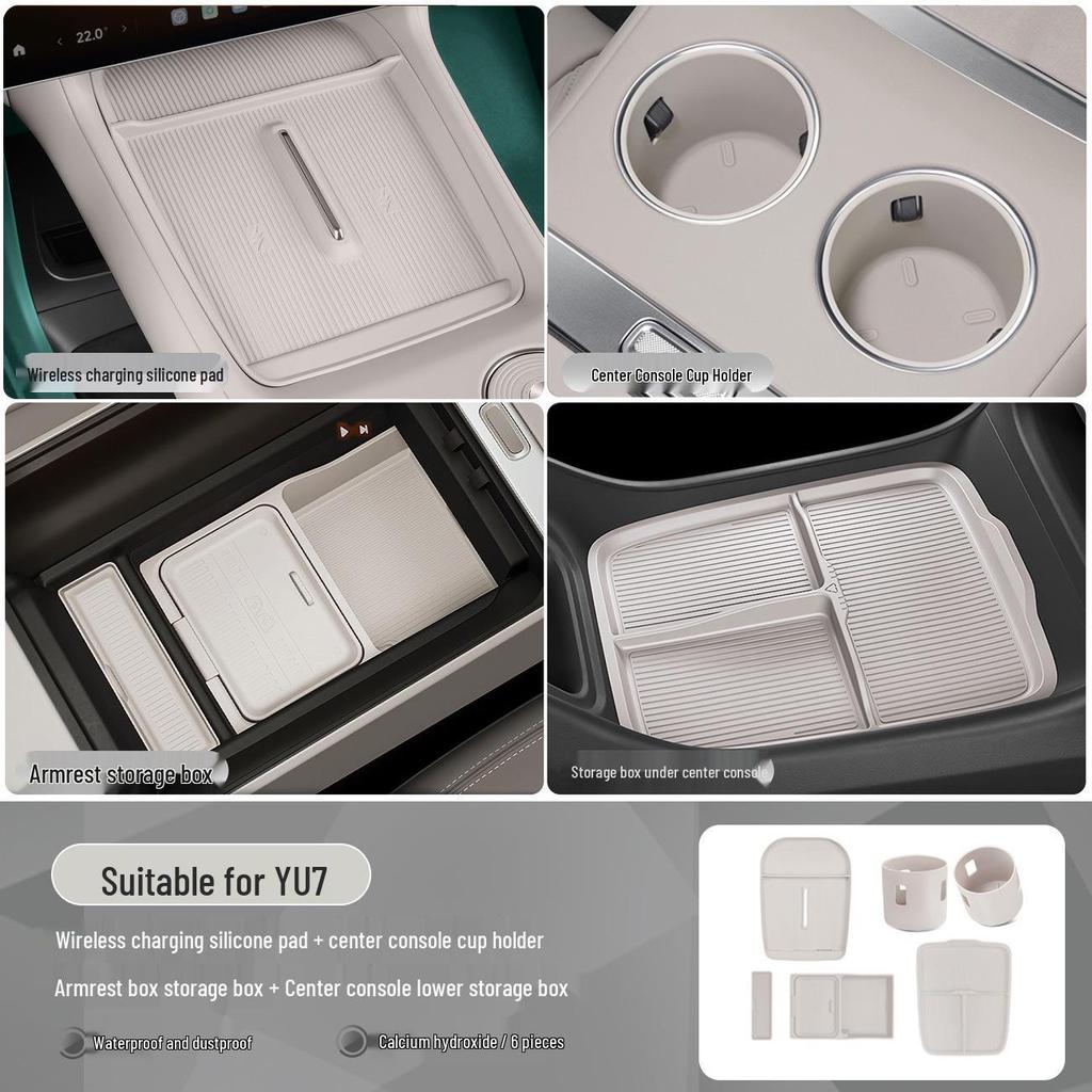 Protection Porte-Gobelet d'Eau pour Console Xiaomi YU7 - Ensemble d'Accessoires de Voiture en Silicone Antidérapant et Imperméable 5 Pièces