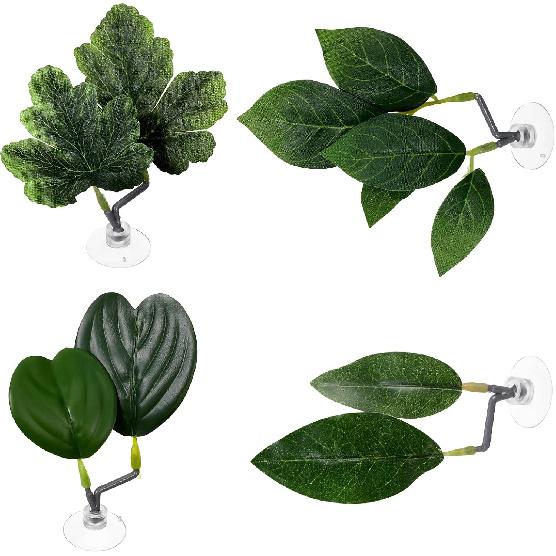 KALIONE 4 Pcs Fish Leaf Pad - 4 Styles Betta Leaf Hammocks with Suction Cup, Fish Tank Accessories Aquarium Décor for Simulating Natural Habitats