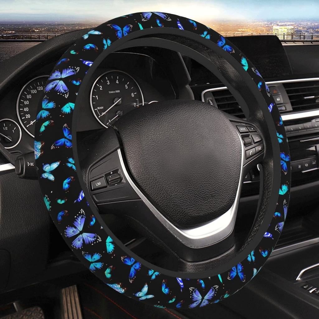 Steering Wheel Cover for Men Women Universal Car Accessories 15 Blue Butterfly